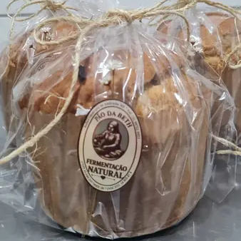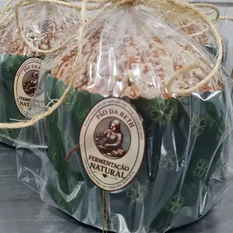 A MASSA É DE PANETONE, INTEGRAL CLARO, COM FARINHA DE TRIGO INTEGRAL DE PRIMEIRA QUALIDADE, 10% DE FARINHA DE TRIGO COMUM, AÇÚCAR MASCAVO ORGÂNICO, MANTEIGA, LEITE, OVOS, FERMENTO BIOLÓGICO E FRUTAS CRISTALIZADAS. TEM O SABOR DO PANETONE, FEITO COMO UM PÃO, TRAZENDO UM GOSTINHO DE FESTA O ANO INTEIRO!